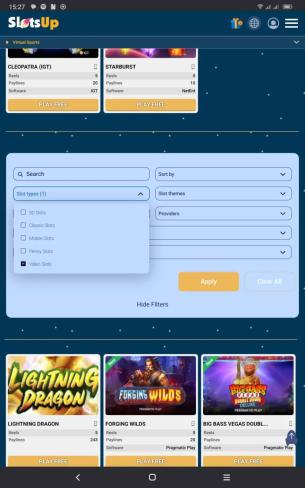 现代老虎机的独特玩法和设计保证了高水平的刺激感,同时伴随着更高的风险,因为某些机制可能需要一段时间才能掌握。在进行真实货币投注之前,不妨先在SlotsUp尝试免费视频老虎机(无需下载)!本指南将展示如何利用网站的智能搜索引擎及其便捷筛选功能挑选最佳游戏: