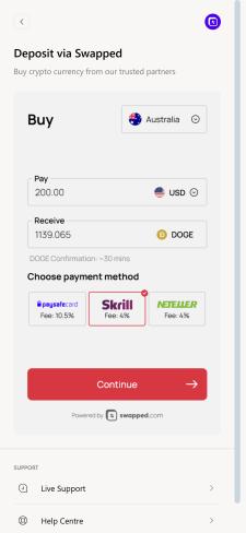 请注意其他平台流程可能略有差异。此外,若您的交易金额未达到狗狗币赌场网站的限额要求,则不会被处理。