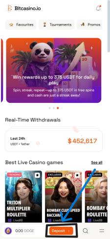 确定使用支持狗狗币的赌场网站后,请参照以下Bitcasino.io账户充值指南: